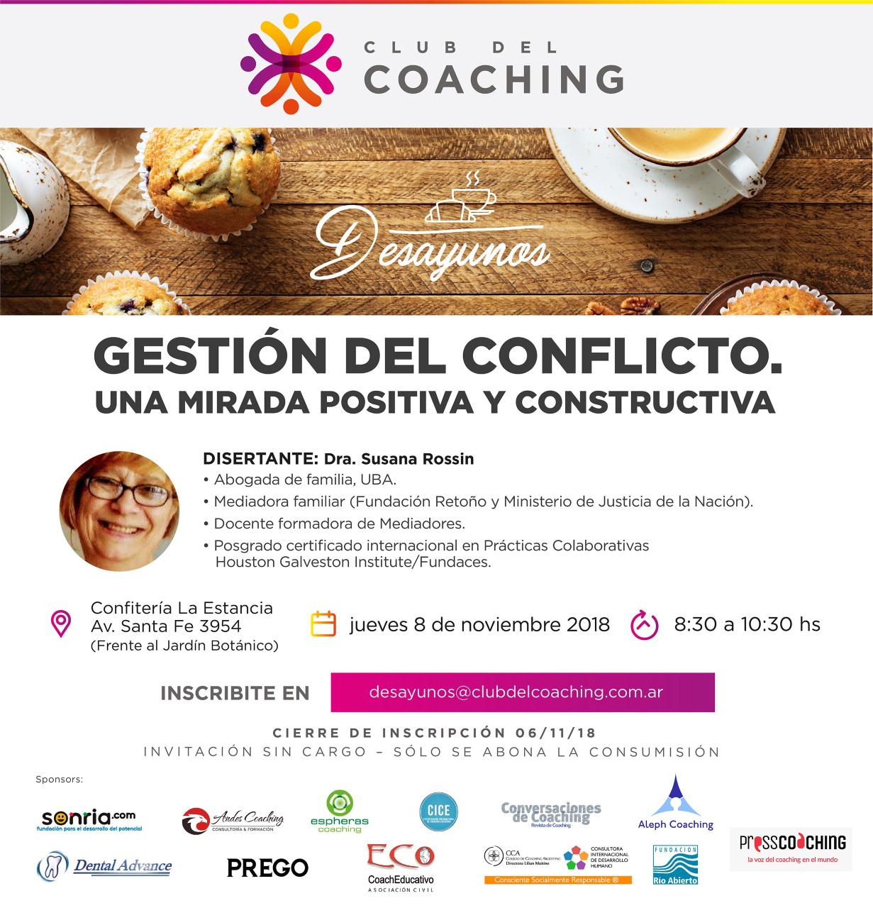 Con voz cálida y amable la Dra. Susana Rossin nos alejó del concepto de mediación legal como antesala de litigio inminente. En un recorrido por diferentes estadios o etapas de la mediación, Rossin habló de un encuentro dónde un coordinador facilita conversaciones fundamentadas en el respeto y el ser en el vínculo. Evidenció la connotación positiva de no hablar del conflicto enfocándose en la revalorización personal en donde el mediador es testigo de las habilidades de los participantes para resolver la problemática que los distancia: “se media con personas, no con problemas”. Comentó que en su vida hizo una elección: aplicar una mediación que sume y citó a Tom Andersen y su Equipo reflexivo Presentando cuatro escuelas o estilos de mediación y llevando a la práctica una dinámica, se cerró el tercer Desayuno.