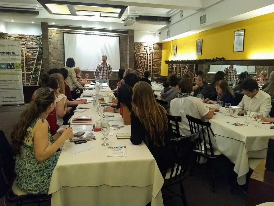 María Silvina González Lanuza nos propuso enriquecer nuestro trabajo como coaches, invitándonos a volcar nuestra mirada hacia el cuerpo y lo que éste nos cuenta, para luego potenciar nuestras preguntas hacia el coachee al observar su respuesta ante los estímulos que las diferentes dinámicas iban proponiendo.